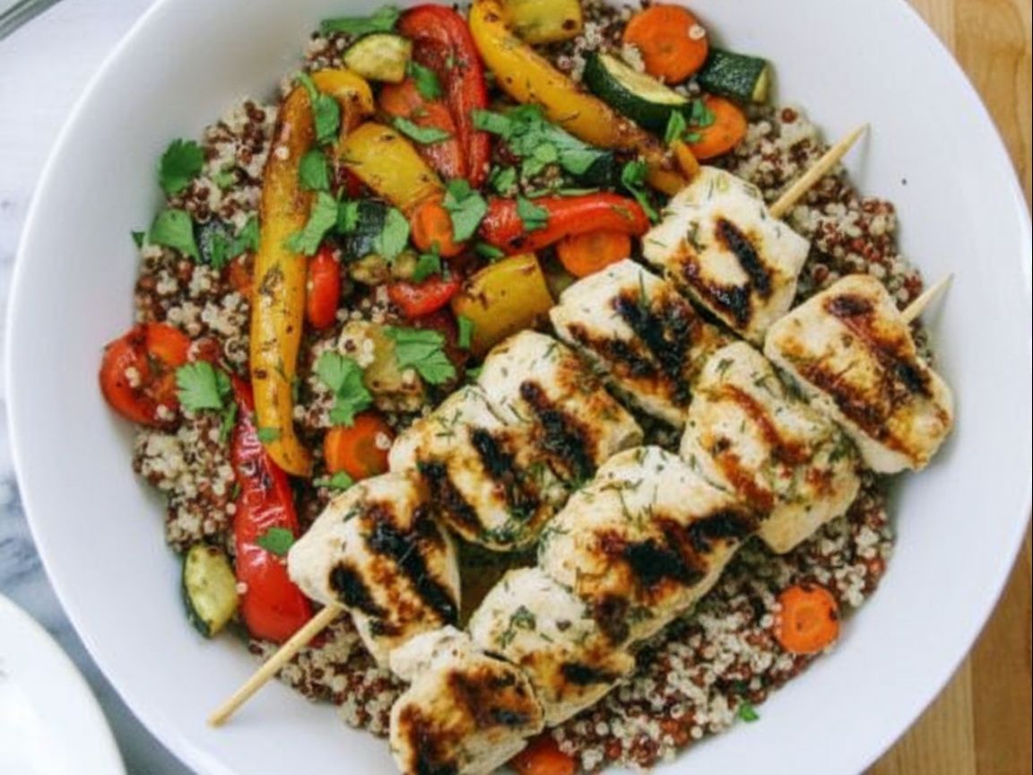 Organic Chicken Kabobs over Quinoa with Veggies – MealPrep